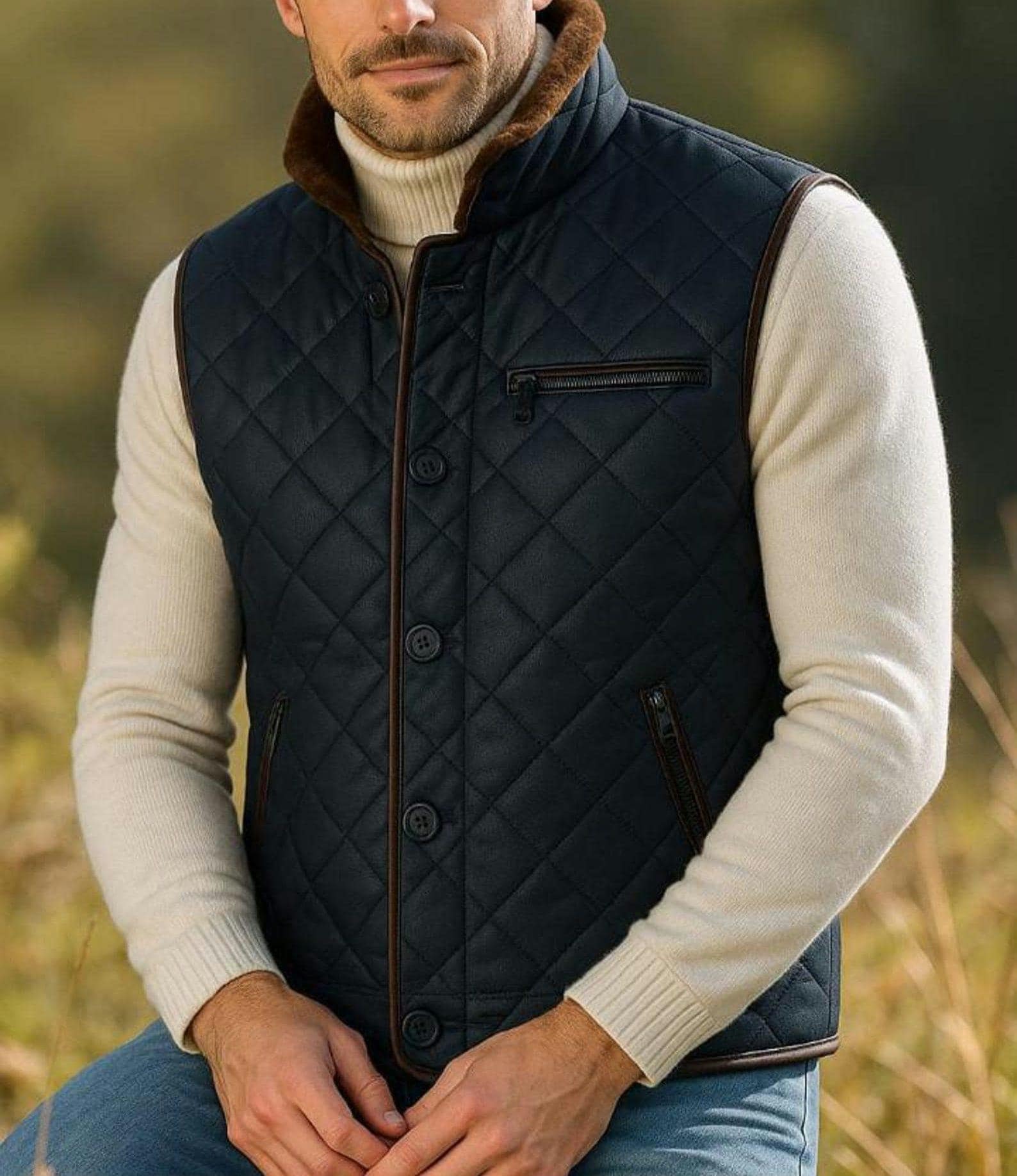 Men’s Cotton Shearling Vest – Warm Winter Bodywarmer Gilet with Faux Shearling Lining, Casual Sleeveless Jacket Gift for Him