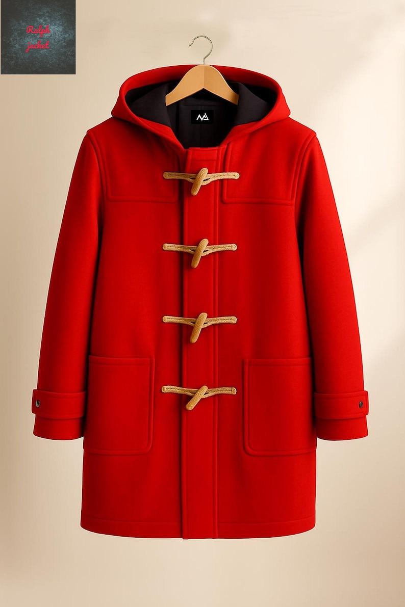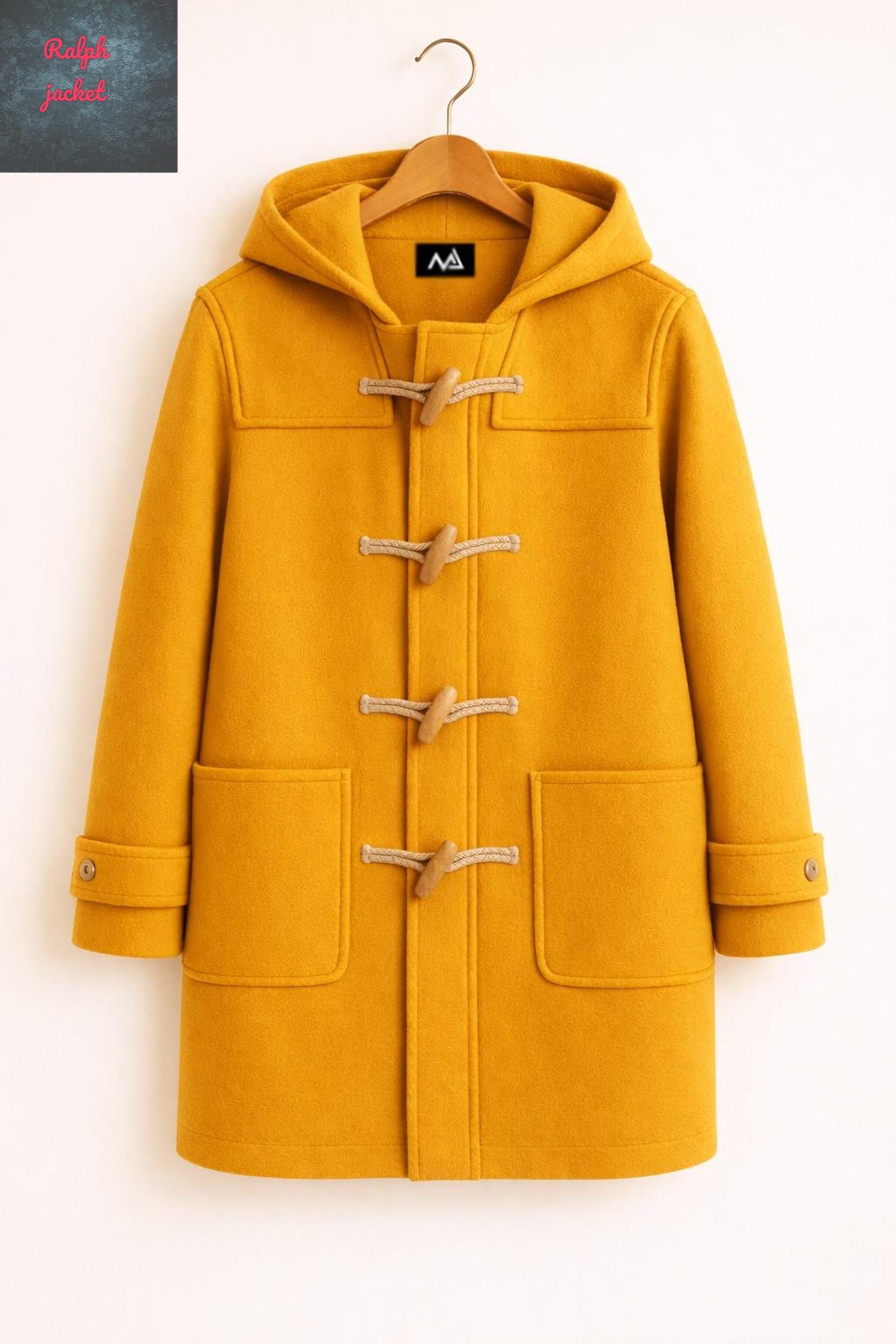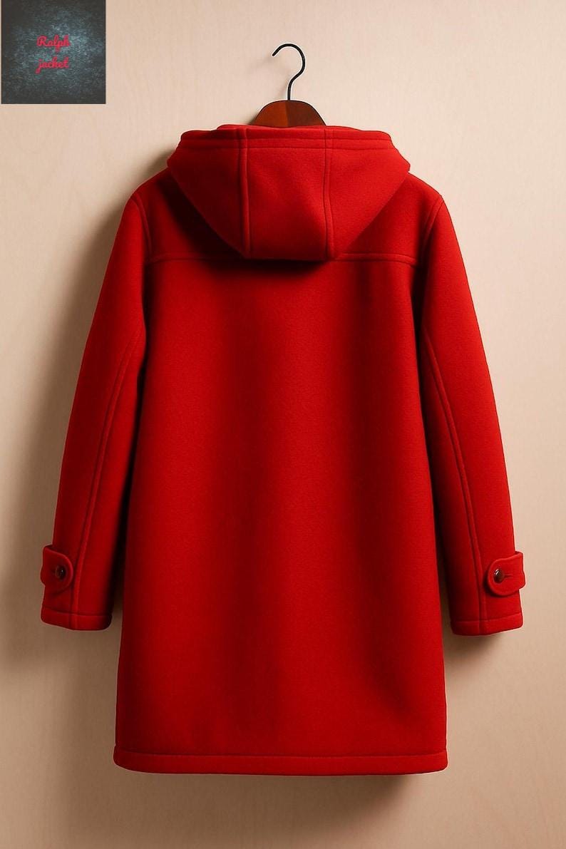 Handmade Wool Coat with Hood: Navy Blue Toggle Jacket, East London Style