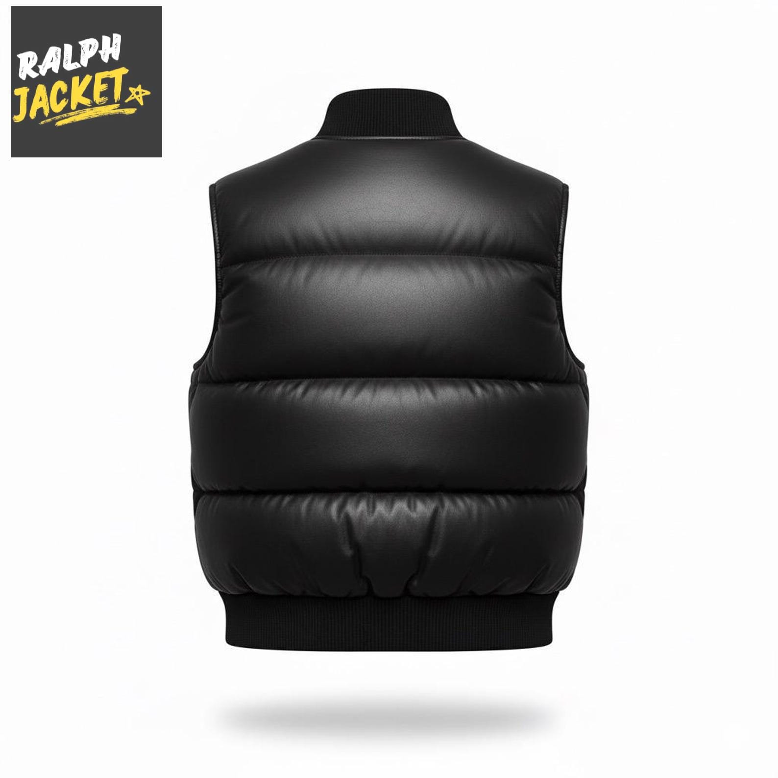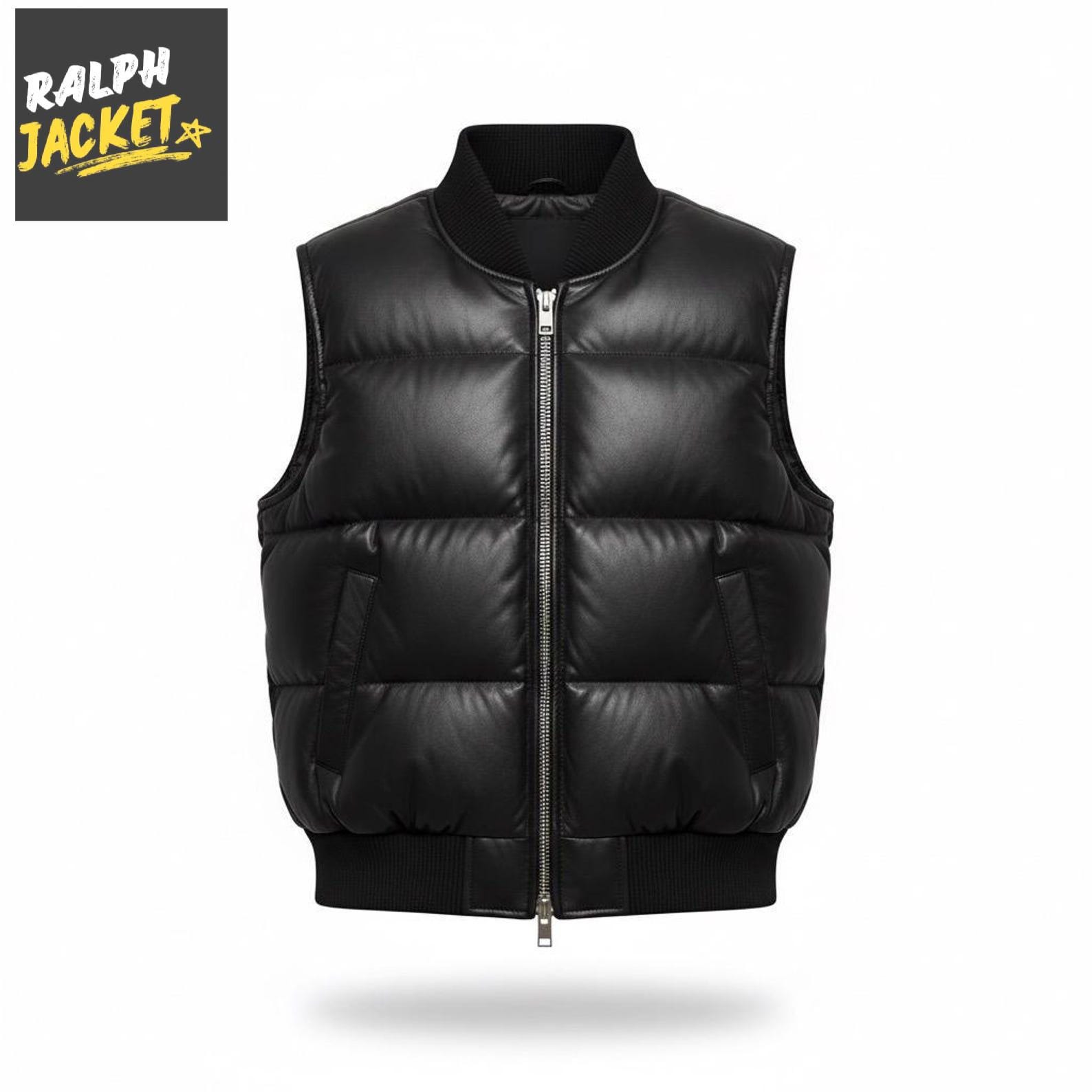 Men’s Black Puffer Leather Vest – Premium Sleeveless Winter Warm Zipper Jacket